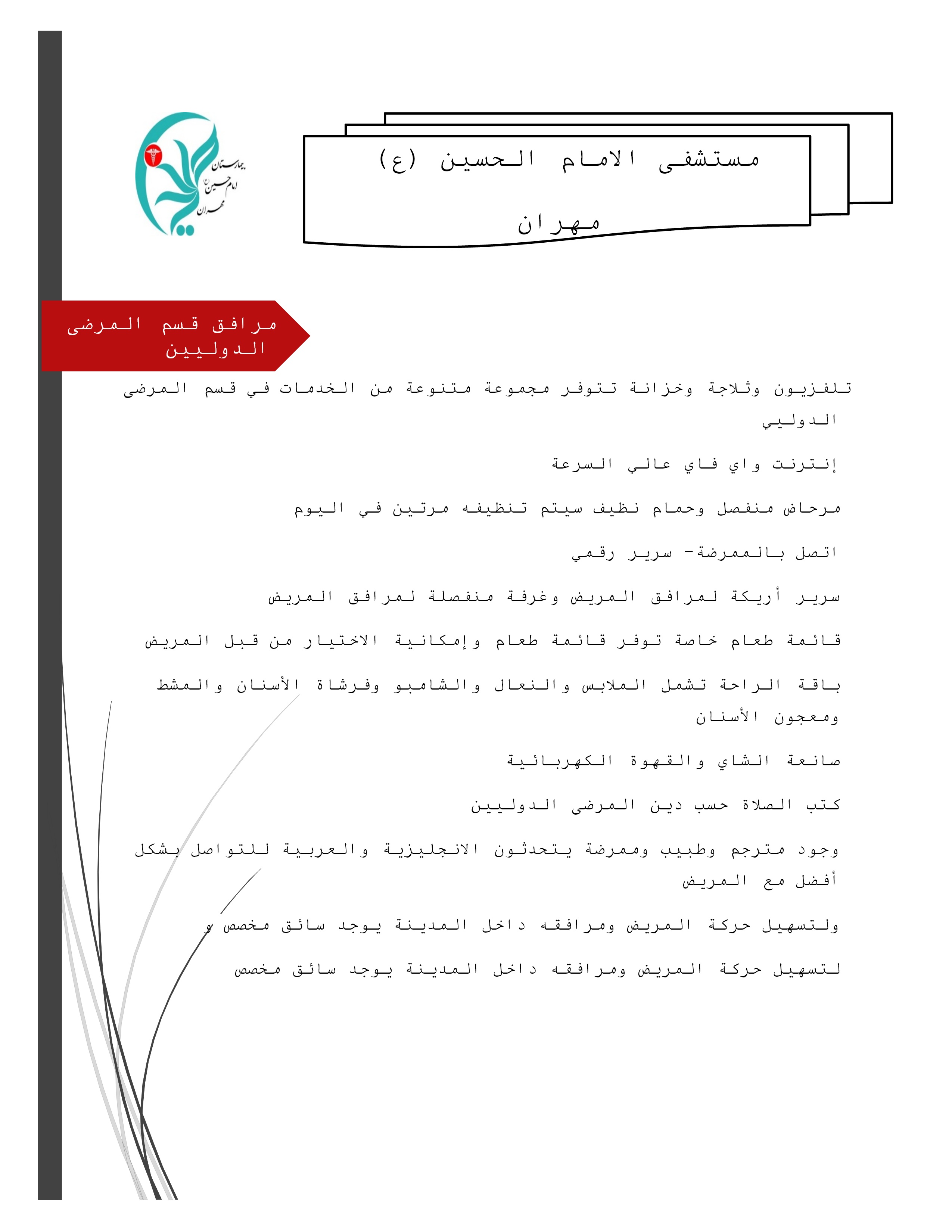 • مرافق قسم المرضی الدولیین